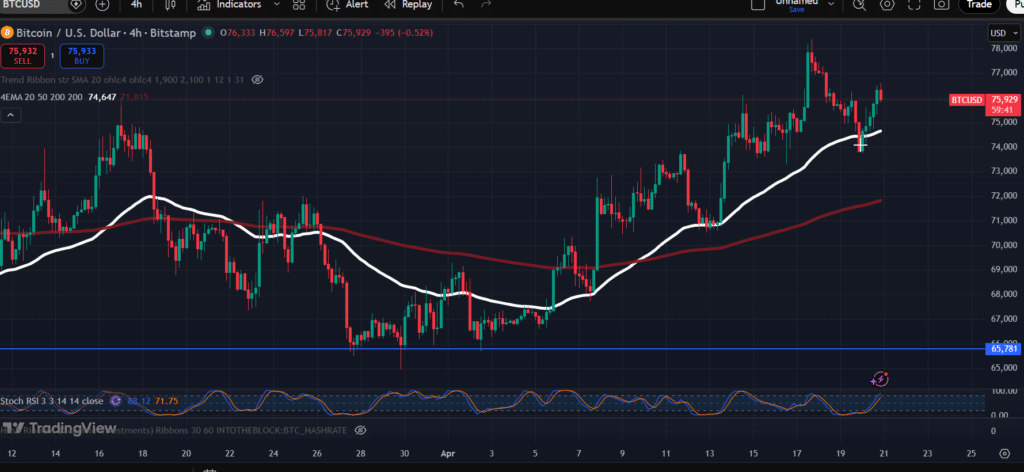 Nuotaikas papildomai sustiprino „Bitcoin“ kaina, kuri penktadienį beveik pasiekė 78 tūkst. JAV dolerių, rodo „CoinGecko“ duomenys.